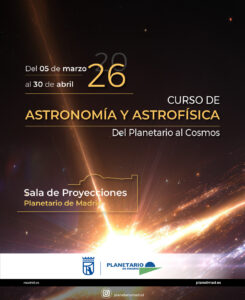 Una de las actividades más demandadas siempre de las organizadas por el Planetario de Madrid ha sido el Curso de Introducción a la Astronomía y Astrofísica. Este año 2026 os presentamos una nueva edición: «DEL PLANETARIO AL COSMOS: curso de astronomía y astrofísica».